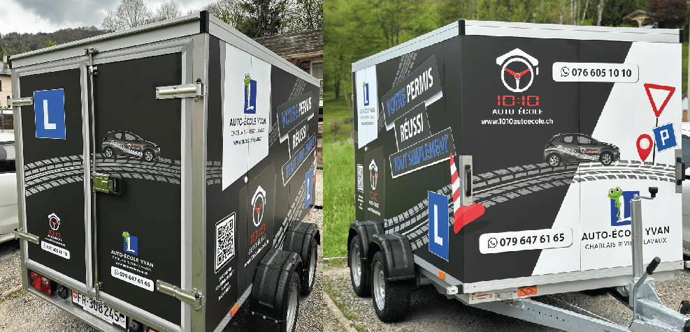 Un grand merci à Charles pour son magnifique travail publicitaire sur notre remorque. Le rendu est parfait, nous recommandons très volontiers son entreprise. Créateurs de 10:10 auto-école & auto-école Yvan